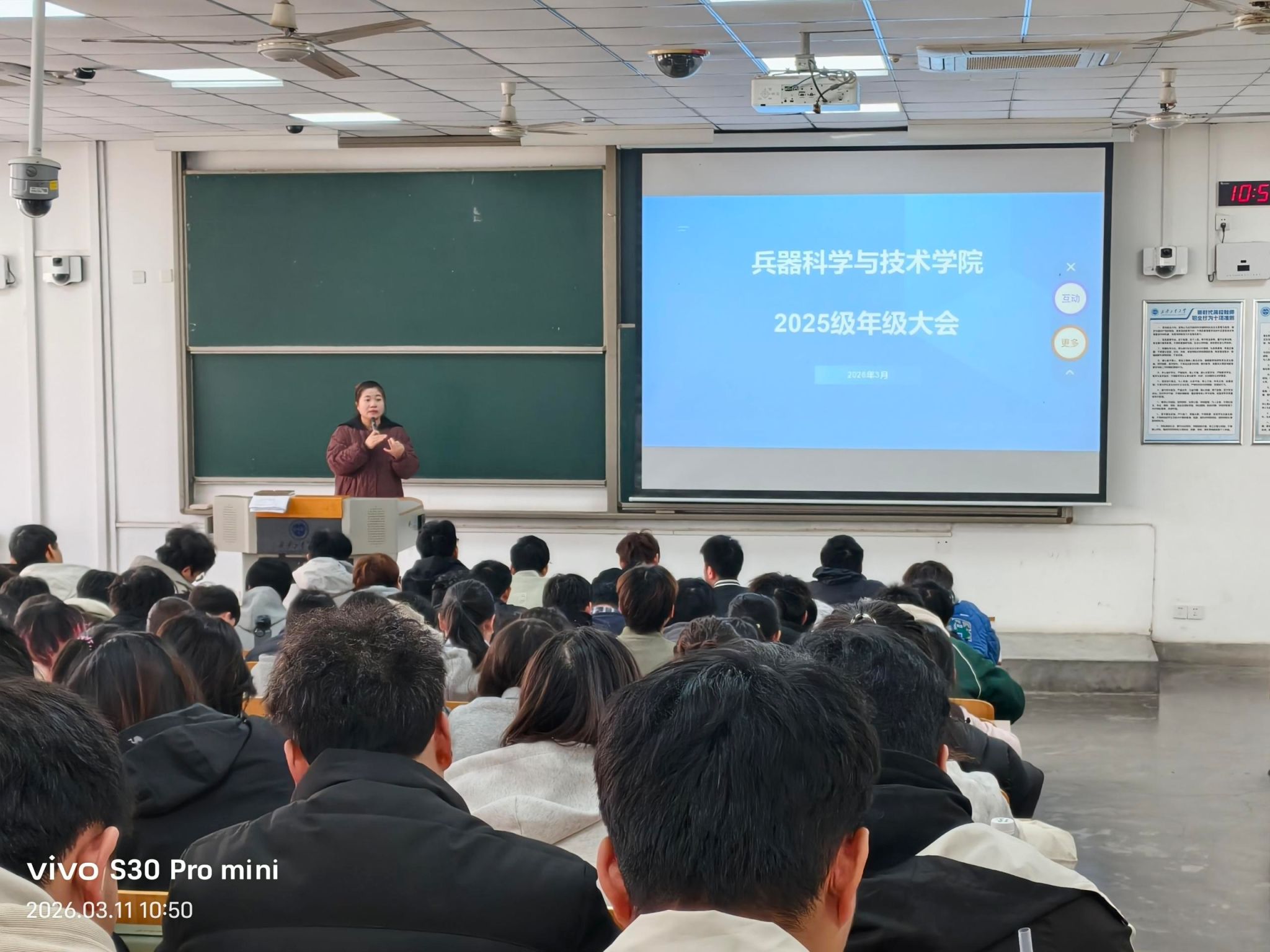 会上,梁伟樯聚焦学科建设与人才培养,系统介绍了学院的基本情况及重点科研团队,突出兵器学院在探测制导、人工智能、武器系统与工程等领域的特色优势与发展成果。他鼓励同学们立足专业前沿,树立远大目标,尽早制定职业生涯规划,积极投身学校组织的各类科技竞赛,不断提升综合素养与实践能力,充分展现学院对学生成长成才的高度重视。